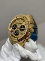 Here is the honest truth: While other factories offer basic gold plating, APSF excels in replicating AP’s proprietary frosted finish—the most distinctive feature of this modelAudemars Piguet. Additionally, APSF wins in terms of movement integration and case thickness, which are critical for the 26240 Chronograph’s wearing experience. The frosted texture requires exceptional craftsmanship to replicate, and APSF’s version captures the subtle light play and tactile quality of the genuine hammered gold finish far better than competitors who often use flat or poorly textured gold platingAudemars Piguet.