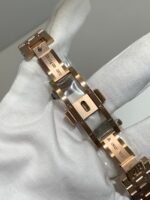Constructed from 316L stainless steel with heavy 18k rose gold plating (5 mils). The brushing and polishing on the case and bracelet links are razor‑sharp.