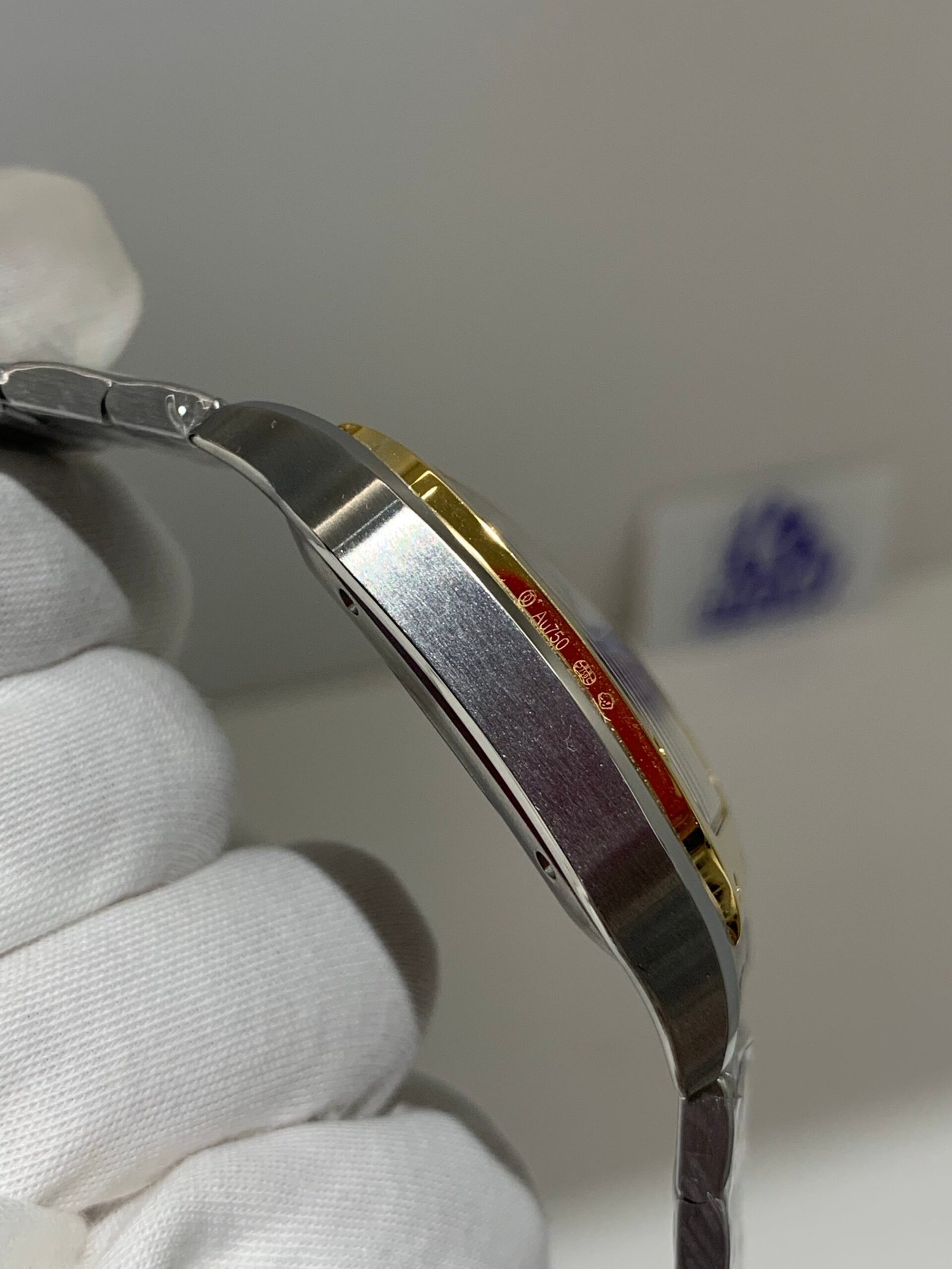 Accurate to the W2SA0030 reference, the 316L steel core is heavily plated in 18k White Gold. The brushing direction on the lugs perfectly matches the bracelet flow, with a cool, luminous metallic finish that mirrors the genuine’s luxury质感.