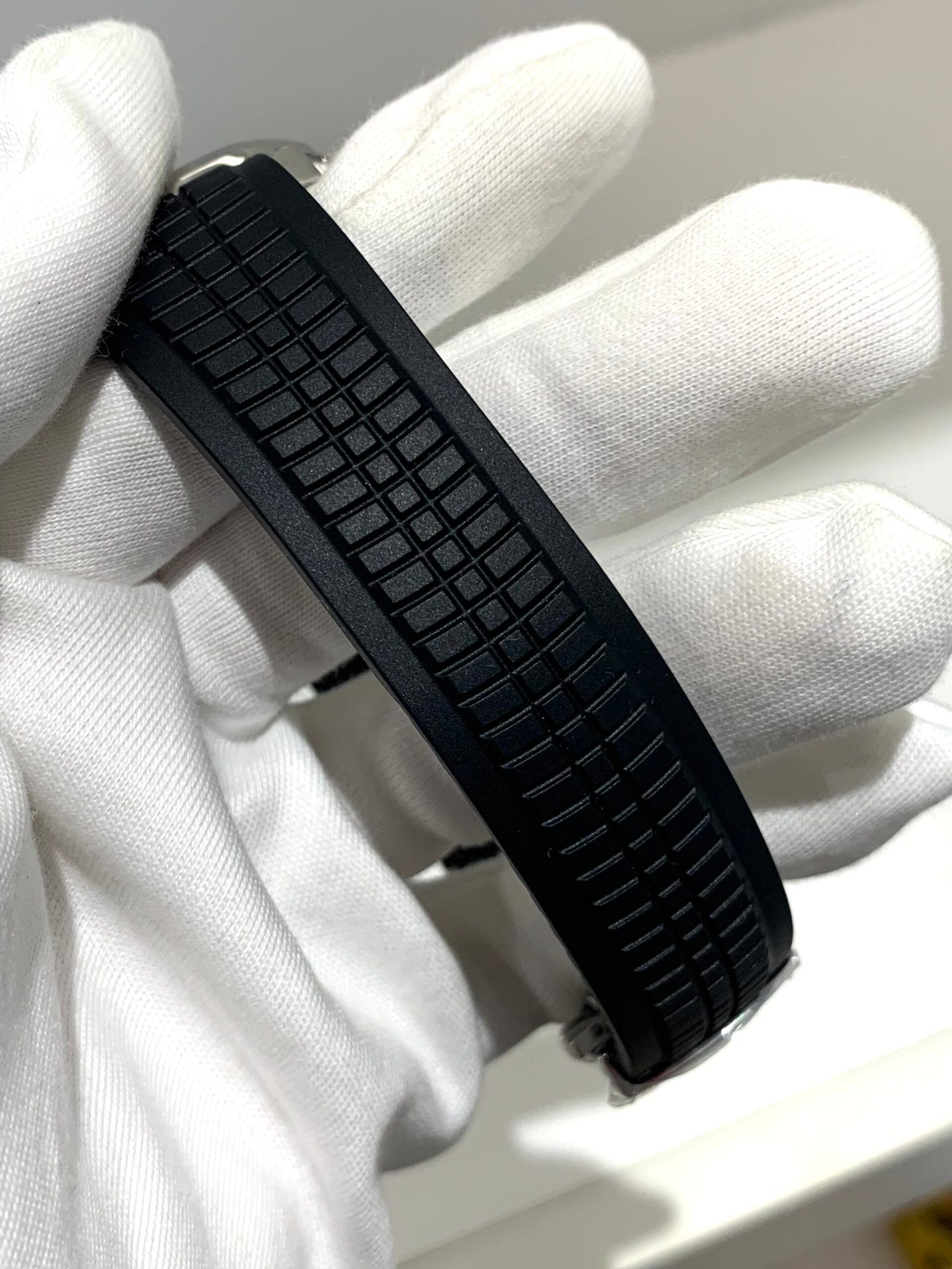 3KF is famous for its “soft” strap feel, exclusive to the Aquanaut series. The integrated rubber strap features the iconic waffle pattern, offering exceptional flexibility and comfort that avoids the stiffness found in cheaper replicas. Features the Aquanaut fold-over clasp with hidden deployment.