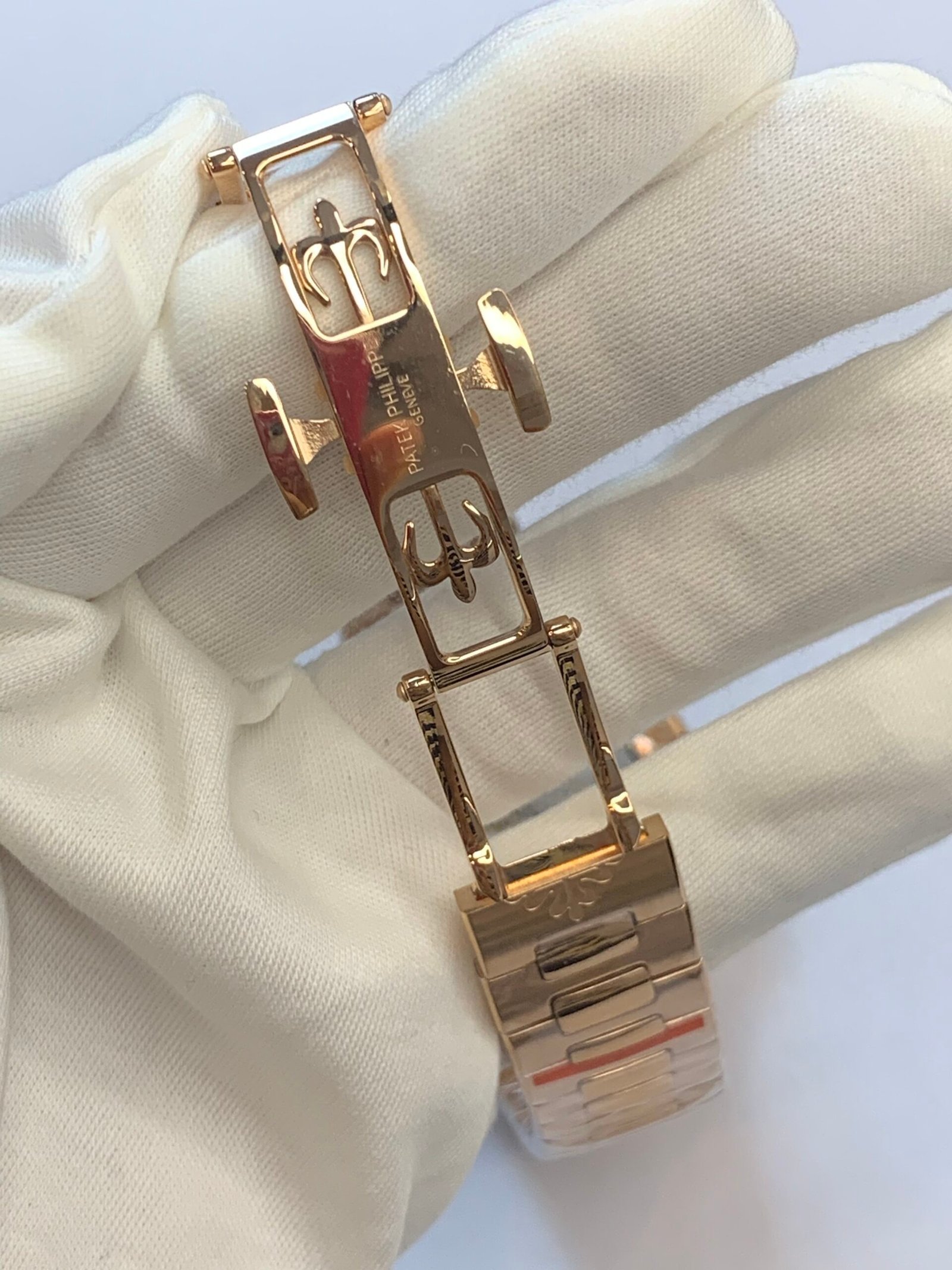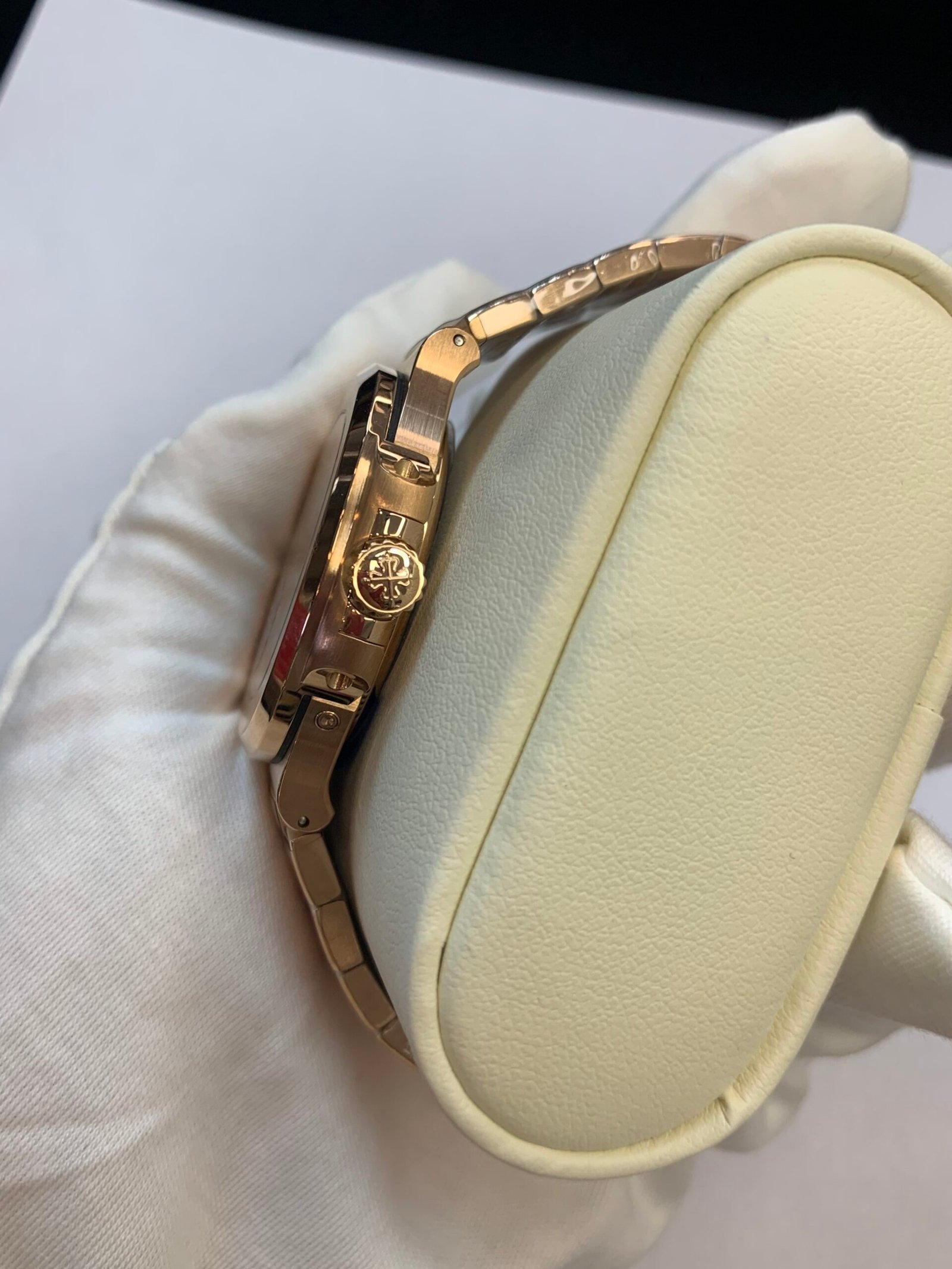 Polished Octagonal Rose GoldA classic octagonal bezel, perfectly polished to a mirror shine, a signature design of the NAUTILUS series. It frames the silvered dial without distraction and maintains the correct curvature relative to the mid-case, echoing the NAUTILUS’s timeless elegant sporty design.