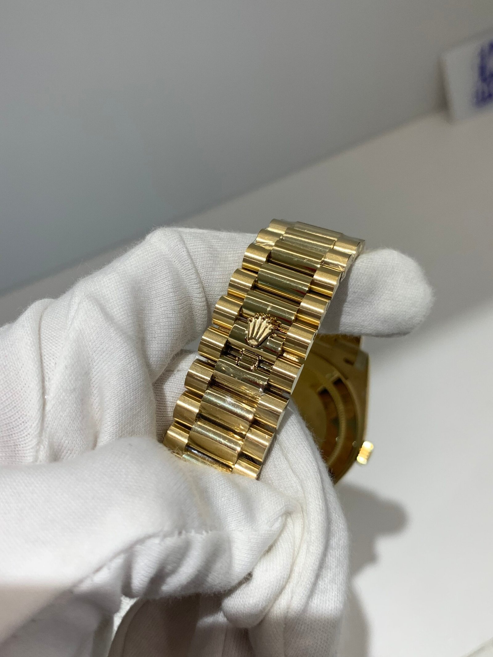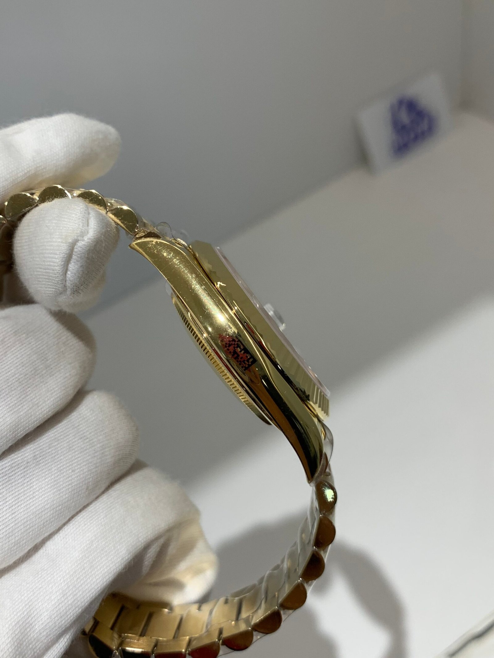 Polished 18K Yellow Gold BezelA classic smooth bezel crafted from 18K yellow gold, perfectly polished to a mirror shine. It frames the dial without distraction and maintains the correct curvature relative to the mid-case, consistent with the genuine design.