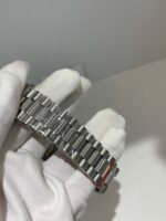 VSF’s case craftsmanship remains unmatched. The 40mm case is precision‑machined from solid 904L stainless steel, with a multi‑layer platinum plating replicating the cool luster of 18k white gold. The signature fluted (triplock) bezel is mirror‑polished to perfection, and the President bracelet features solid, seamless links with a flawless taper, delivering an identical feel and weight (≈182g) to the genuine article on the wrist.