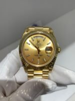 A timeless luxury flagship in 40mm 18K yellow gold, featuring champagne sunburst dial with Roman numerals, fluted bezel, President bracelet, powered by VS3255 Super Clone movement — zero ghost functions, instant day & date, genuine handling, 70+ hour power reserve.