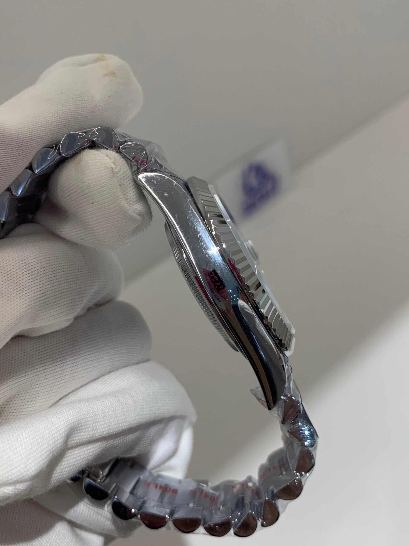 Crystal ClarityVSF is unrivaled in crystal production. The sapphire crystal is incredibly clear, with no milky ring effect (white edge) and correct internal AR coating, while the Cyclops lens at 3 o’clock magnifies the date window with 2.5x clarity—mirroring the genuine’s design and ensuring the slate grey dial’s soft color and sunburst texture pop in any lighting. The dial’s Roman numerals, luminous filling, and the white gold bezel’s (no white scale ring) luster are all crafted to 1:1 precision, capturing every detail of the original’s top-tier, minimalist luxury design.