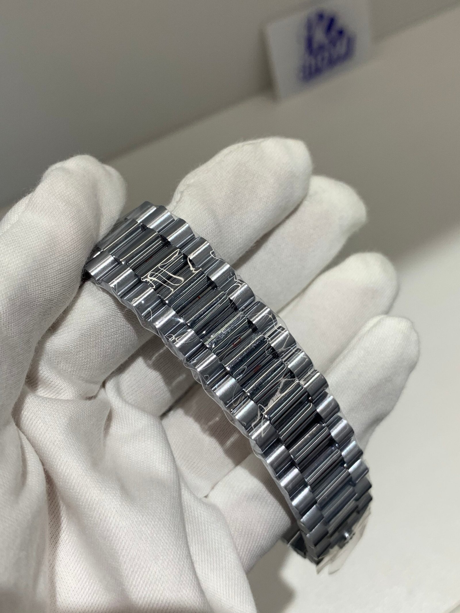 18K White Gold Case & President BraceletVSF continues its dominance in case machining, perfectly replicating the genuine M228239-0007’s iconic 18K white gold craftsmanship. The case and President bracelet are crafted with high-quality white gold plating, mirroring the genuine’s cool, bright luster and dense texture. The President bracelet (three-link design) boasts a buttery smooth taper, tailored for masculine wrists to ensure a comfortable and snug fit that feels identical to the genuine article, exuding top-tier luxury and sophistication, consistent with the bezel’s no-white-scale-ring design.