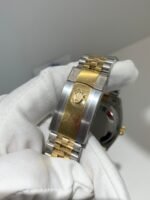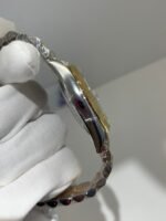 Polished 18K Yellow Gold Fluted Bezel A classic fluted bezel crafted from 18K yellow gold, perfectly polished to a mirror shine—an iconic Rolex signature. Originally designed for functional waterproofing (to screw the bezel onto the case securely), the fluting now serves as a distinguished aesthetic element, framing the chocolate brown sunburst dial elegantly without distraction and maintaining the correct curvature relative to the mid-case, matching the genuine’s proportions exactly. The polished yellow gold bezel complements the warm, rich tone of the chocolate brown dial, highlighting the model’s luxurious and mature temperament and harmonizing with the Yellow Rolesor material blend.