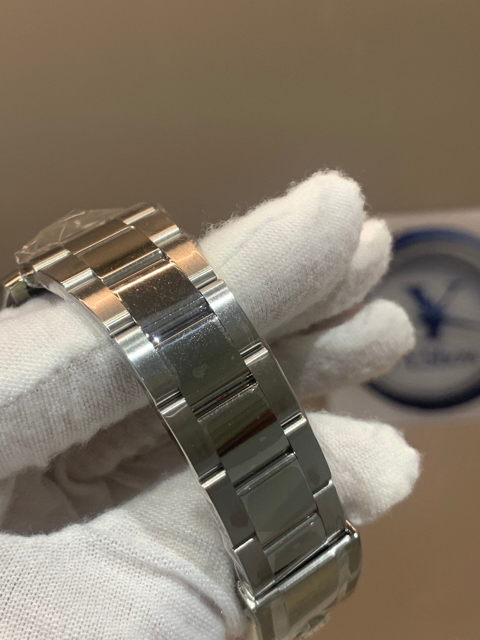 VSF masters the iconic Rolesor combination—904L stainless steel case with polished 18ct white gold fluted bezel. The lugs feature industry-leading brushing, and the Jubilee bracelet tapers perfectly for an authentic on-wrist feel. The Oysterlock clasp with Easylink 5mm extension system is replicated to the finest detail.