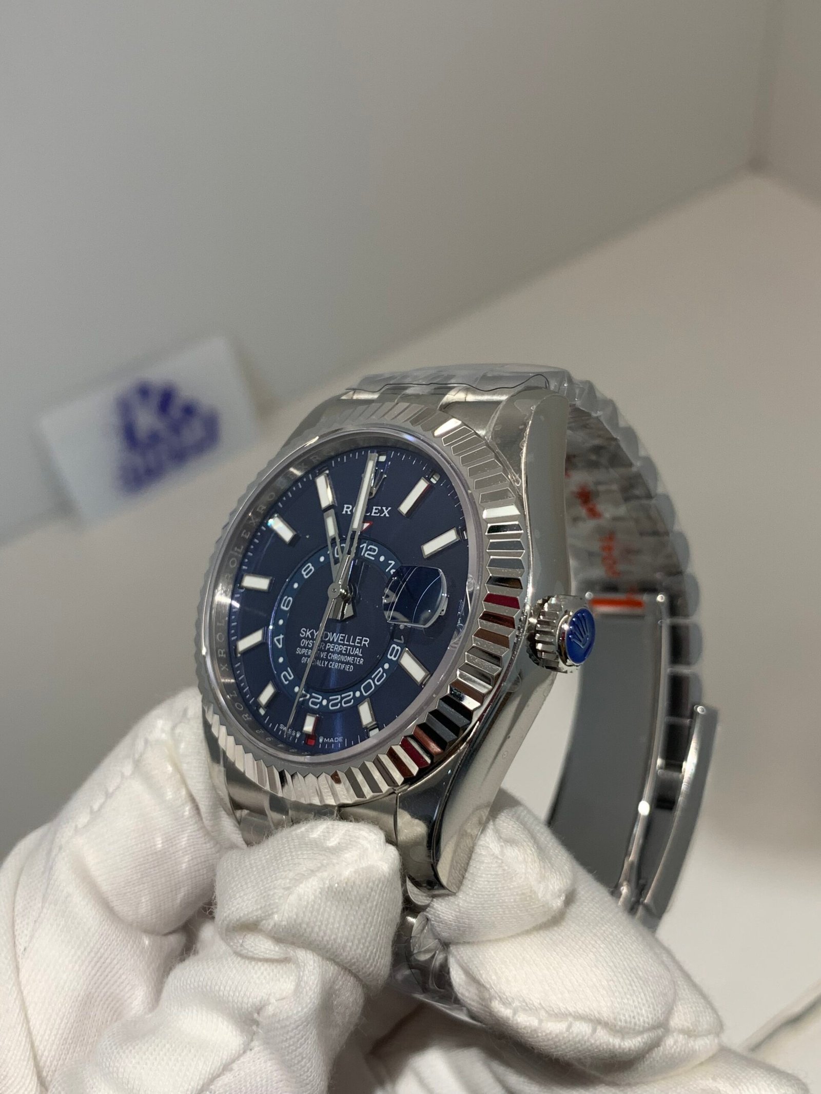 VSF sapphire crystal is incredibly clear, with no milky ring effect and correct internal AR coating, making the smoke-gray dial and diamond markers pop in any lighting.