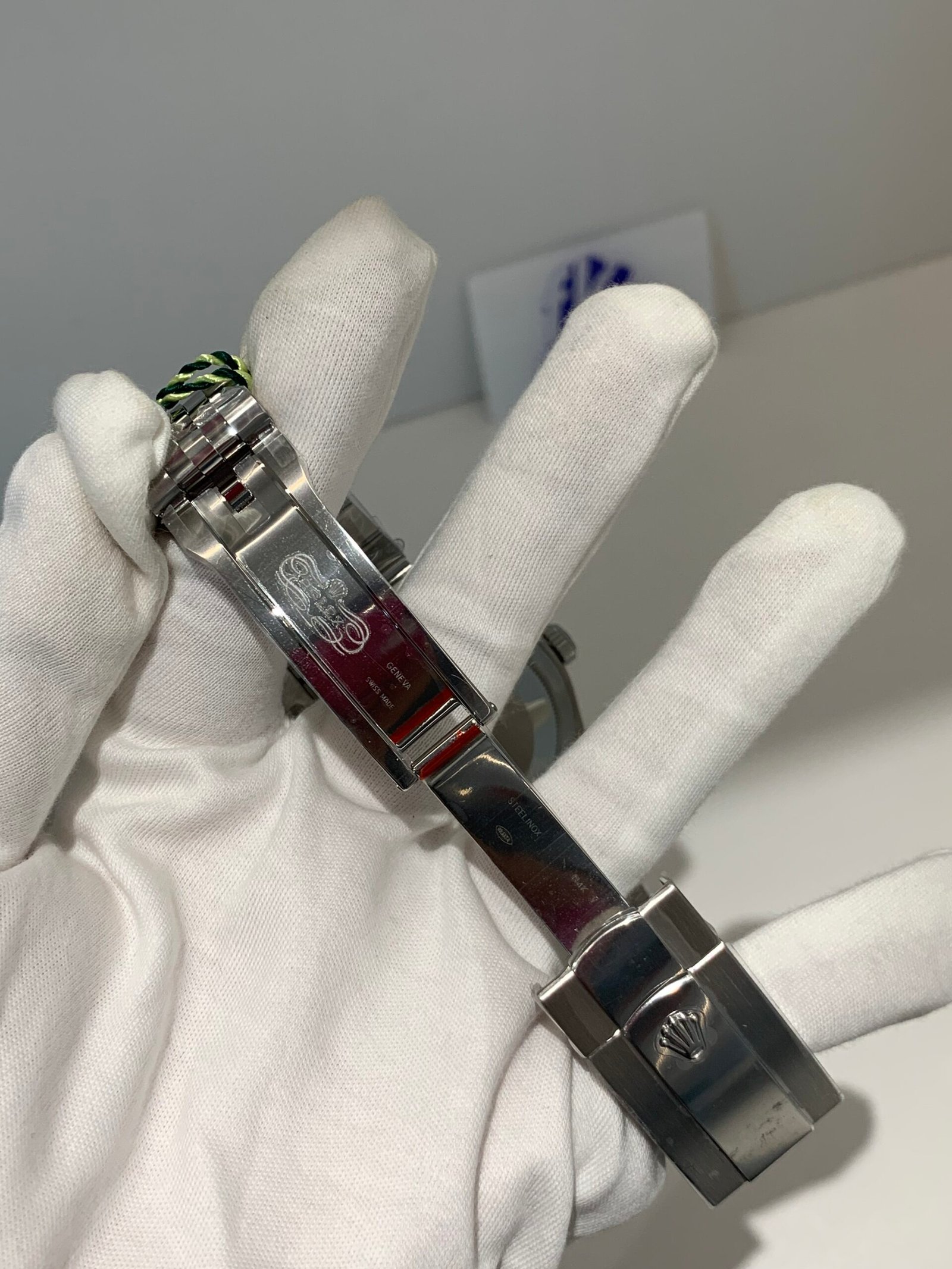A fully polished, mirror-finish bezel with cleanly engraved white tachymeter scale. It holds perfect curvature relative to the mid-case and frames the dial with understated luxury.