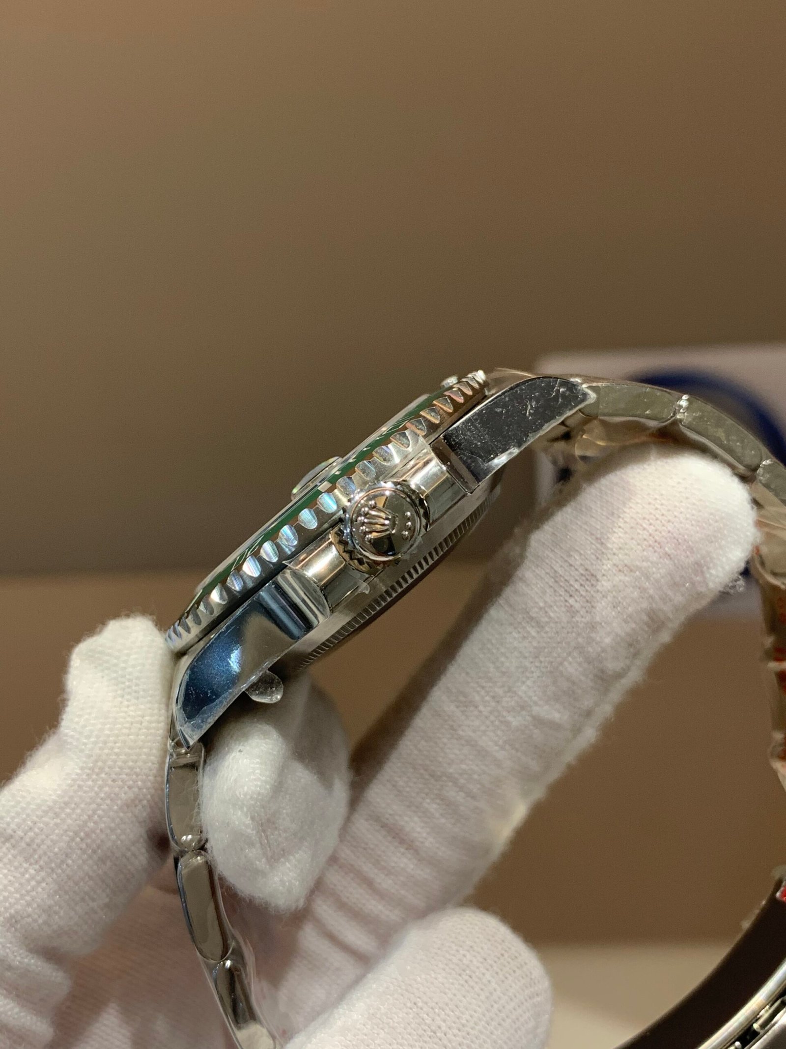 The sapphire crystal is optically perfect, with no milky edge and a flawless internal AR coating. The Cyclops lens magnifies the date by 2.5x without distortion. Every surface, from the polished bezel to the brushed case sides, achieves a mirror-like finish that matches the genuine’s luxury feel.