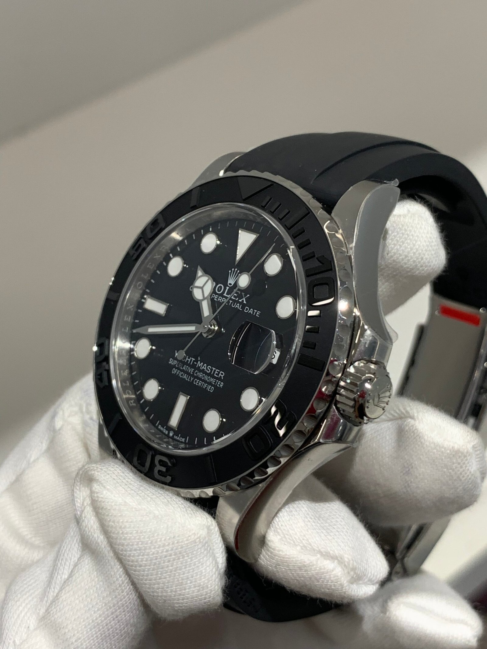 18K Everose Gold FinishVSF continues its dominance in case machining. The 18K Everose gold features industry-leading polishing on the lugs and a buttery smooth Oysterflex rubber strap with 18K gold deployant clasp, feeling identical to the genuine article on the wrist, embodying the YACHT-MASTER’s iconic luxury and durability.