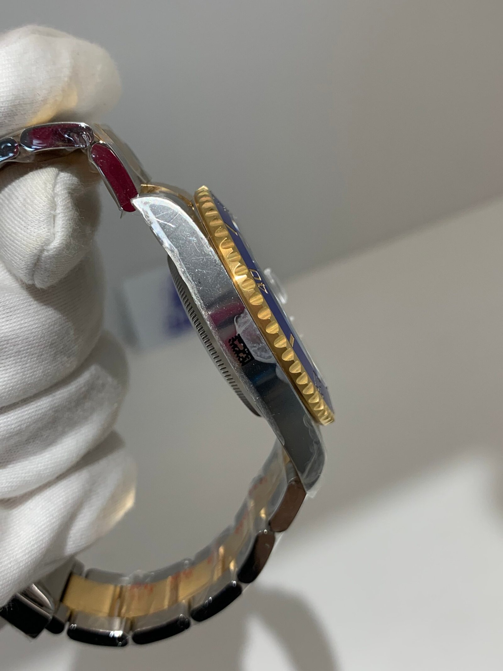Cerachrom & GoldBlue Cerachrom ceramic insert with PVD Gold coated numerals. The bezel teeth are sharp and plated in 18k gold. The rotation sound is crisp and gen-like.